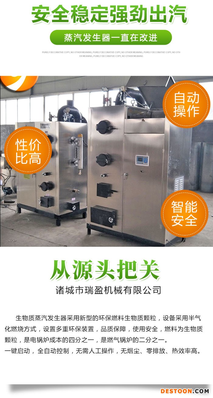本設備全自動電腦控制,免公司爐工,無需報批,無需年檢,可自行安裝。 設備介紹: 生物質蒸汽發生器采用新型的環保燃料生物質顆粒,設備采用半汽化燃燒方式,設置多重保護裝置,品質保障。燃料為生物質顆粒,是電鍋爐成本的四分之一,是燃氣鍋爐成本的二分之一。 一鍵啟動,全自動控制,無需人工操作。無煙塵、零排放、熱效率高。